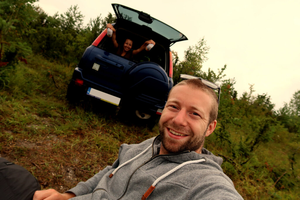 Dotrzeć na miejsce można na kilka sposobów. Na piechotę, rowerem albo samochodem, który ma wysoki prześwit, a najlepiej jest pędzony na cztery koła. (to akurat przydało się nam do dalszej zabawy). Nie rozkładaliśmy namiotu, postawiliśmy na spanie w samochodzie. Można by rzec, że z czystego lenistwa, ale po prostu nie chcieliśmy suszyć potem namiotu, wiedząc, że padać będzie na bank. A nie … to jednak lenistwo.