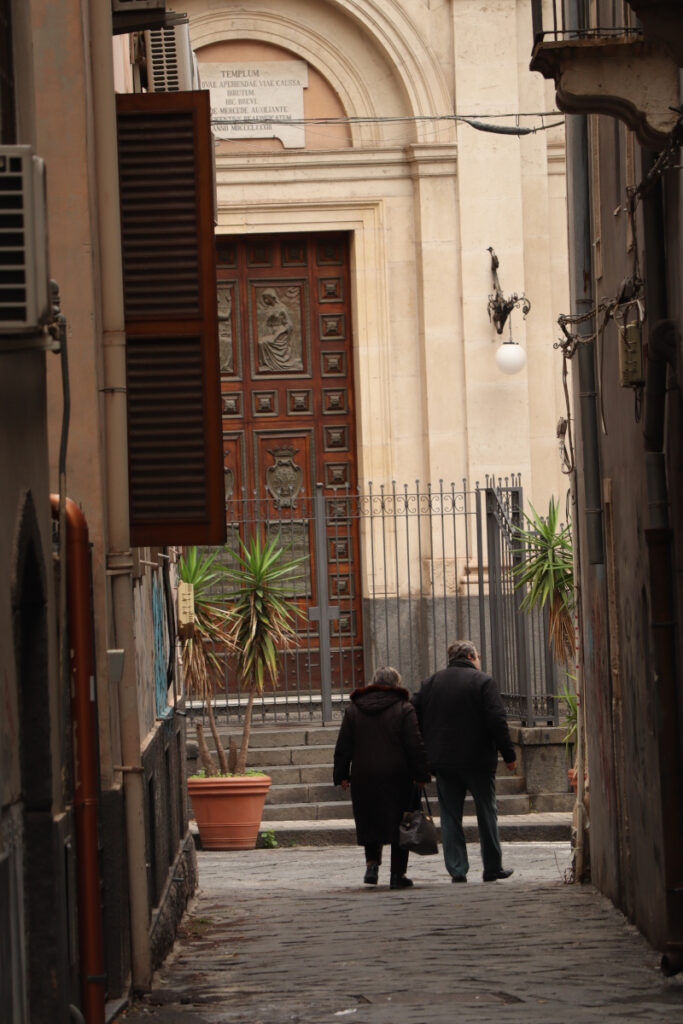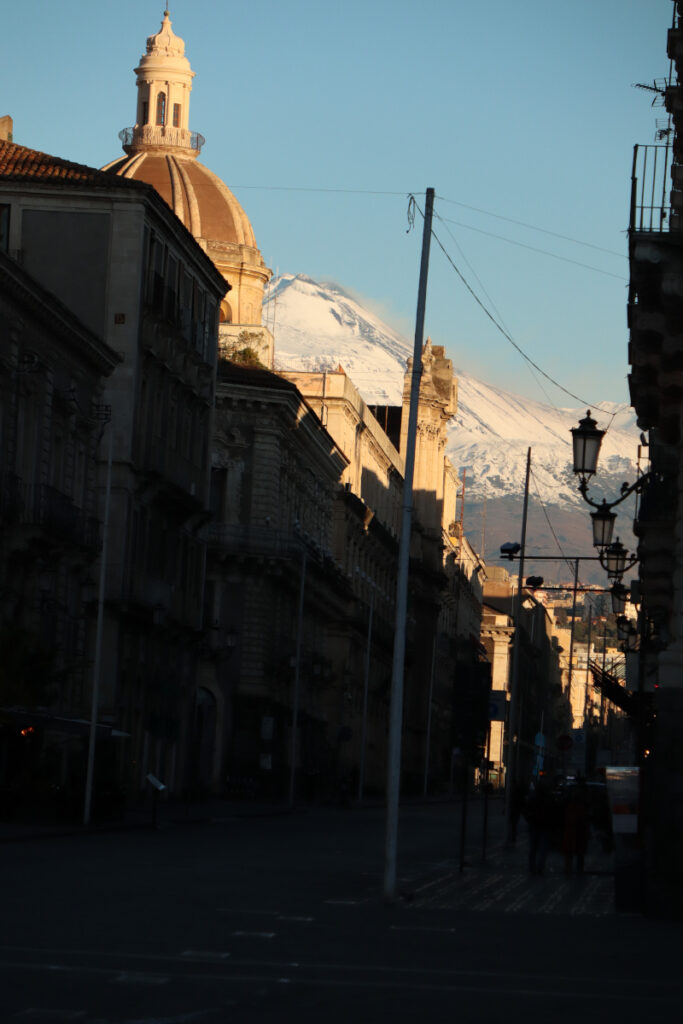 Via Etna – każde większe miasto ma swoją ulicę splendoru, przepychu i prestiżu, więc dlaczego Katania takiej ulicy miałaby nie mieć. Wybrukowana skałą wulkaniczną via Etna jest typowym deptakiem, który jest najdłuższą ulicą nie tylko w Katanii, ale na Sycylii. Najbardziej spektakularnym doznaniem jest spacer ulicą podziwiając szczyt wulkanu smagany chmurami. Ulica od Piazza Duomo kusi kawiarenkami i restauracjami, by po kilku krokach cieszyć oko witrynami butików przeróżnych marek. Powoli ‘zbliżając’ się do wulkanu gwar turystycznego miasta ustępuje życiu codziennemu Katanii. My spacer po ulicy skończyliśmy na Ogrodzie Botanicznym.