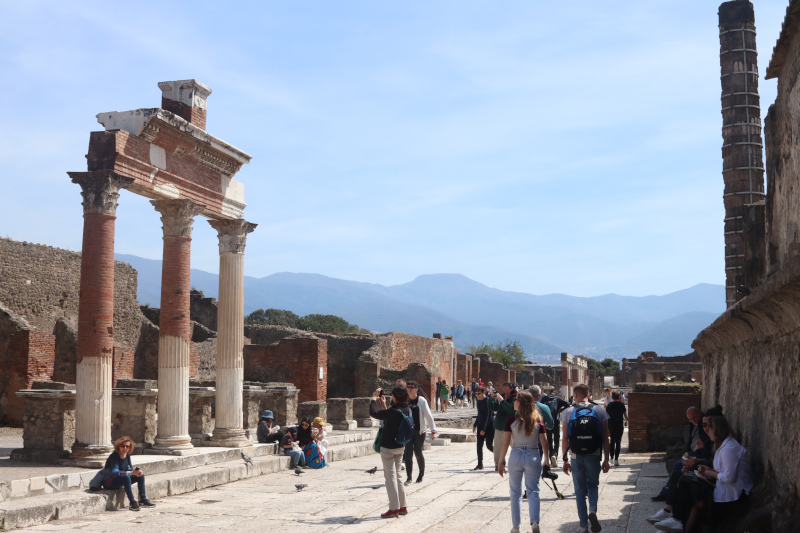 Pompeje to ogromny teren na otwartym słońcu, często bez cienia. Dlatego: